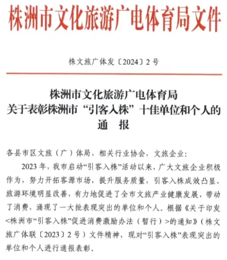 喜報 | 神農城景區(qū)獲得2023年度株洲市“十佳旅游景區(qū)”榮譽